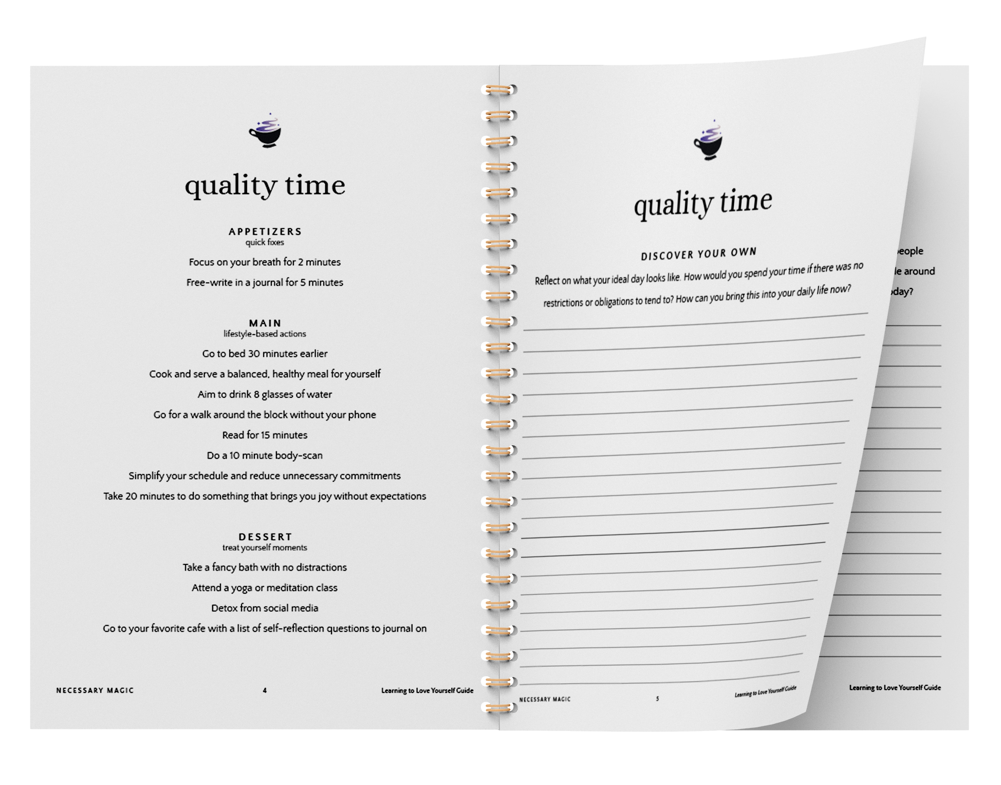 You’ve heard of practice makes perfect. Well here, we’re going to focus on practice makes progress. The word itself may make you think of a meditation practice, sports practice, or even practicing your craft, though one thing is similar with all: consistency. Carving out time in your day to intentionally show up for self-love, because we all know what it’s like to know it’s good for us to meditate, though it doesn’t do a whole lot to think about meditating. We must learn to show up for ourselves, because that is where the real magic starts to happen.Through rituals, reflection, and practical tools, you’ll learn how to: